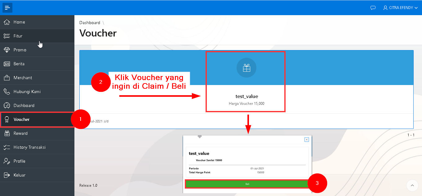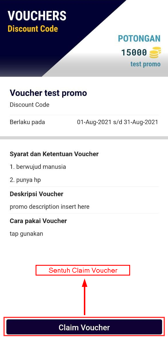 Sentuh ‘Claim Voucher’ untuk klaim.